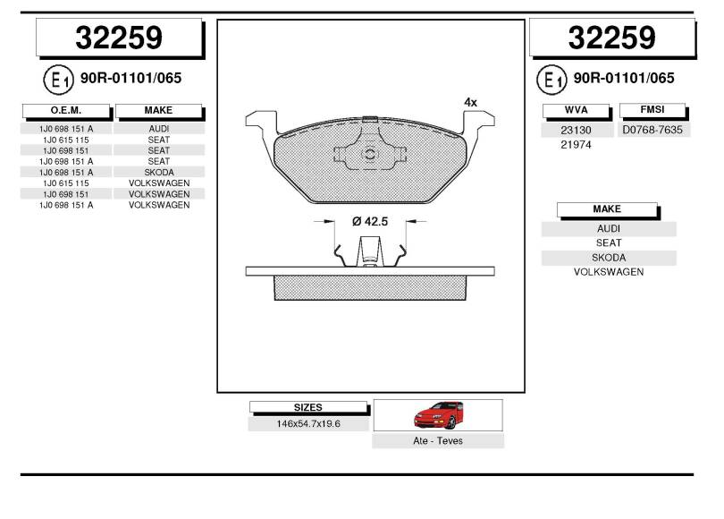 • Če ste kodo zavornih ploščic po navodilih pravilno izbrali,