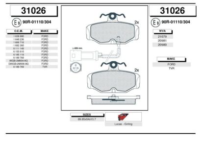 • Če ste kodo zavornih ploščic po navodilih pravilno izbrali,