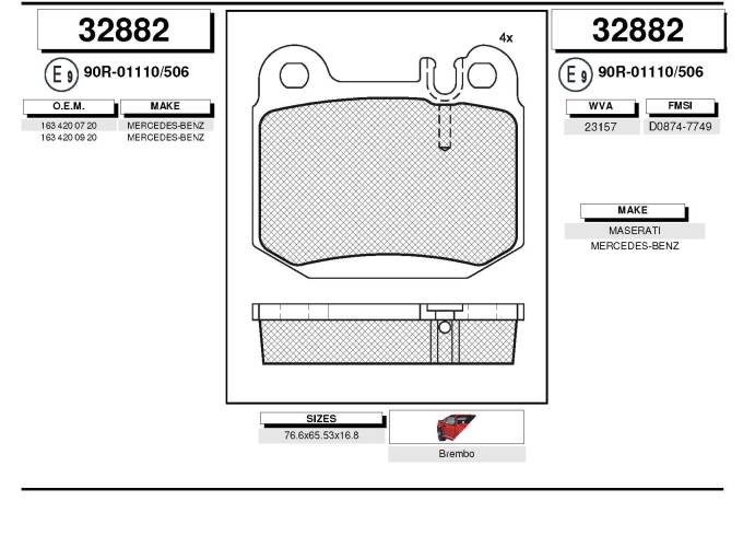 • Če ste kodo zavornih ploščic po navodilih pravilno izbrali,