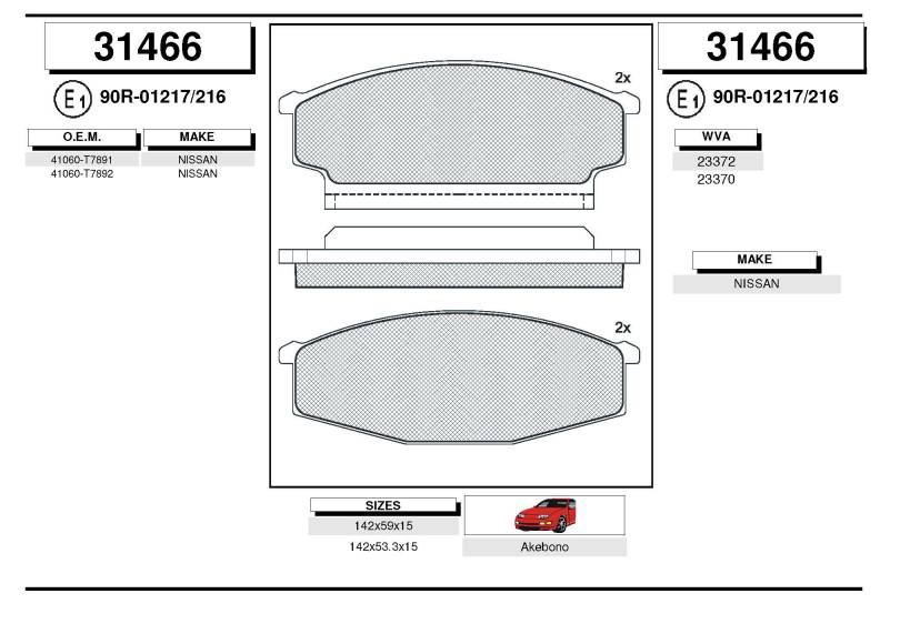 Zavorne ploščice NISSAN