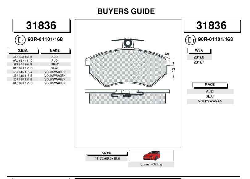 • Če ste kodo zavornih ploščic po navodilih pravilno izbrali,