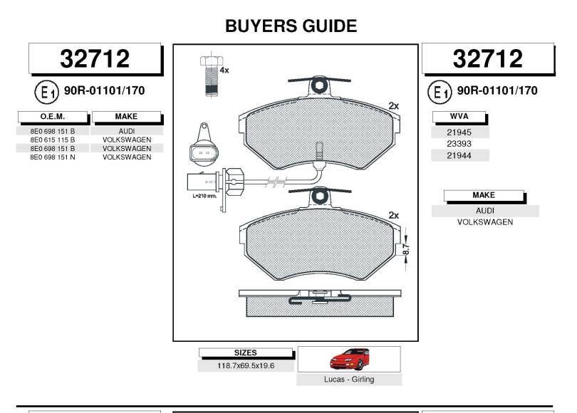 • Če ste kodo zavornih ploščic po navodilih pravilno izbrali,